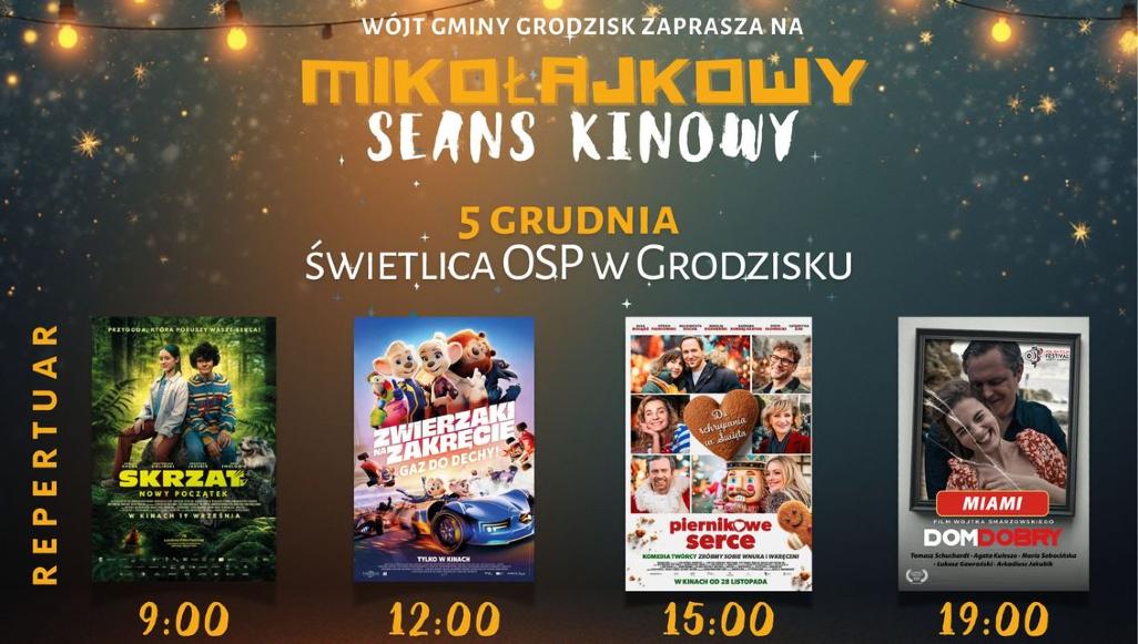 Seanse kinowe coraz częściej docierają także do mniejszych miejscowości, a grudniową ofertę filmową przygotowano tym razem dla mieszkańców Grodziska. W ramach Mikołajkowego Seansu Kinowego zaplanowano pokazy dla dzieci, młodzieży i dorosłych.