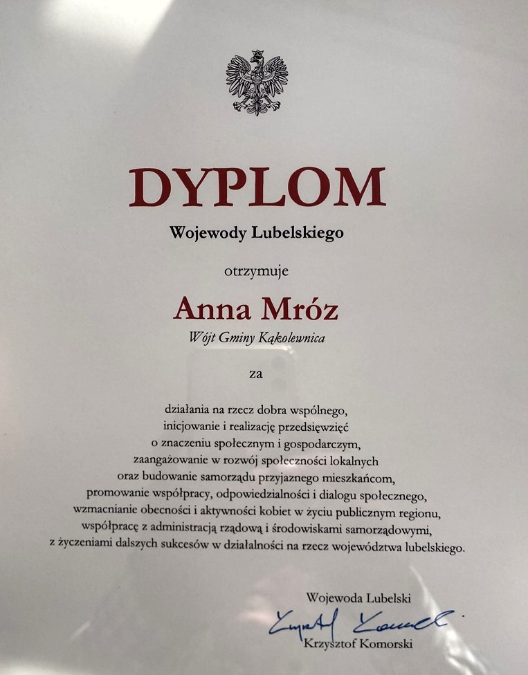 Podczas spotkań seniorzy opowiadają o swoich zainteresowaniach, prezentują umiejętności oraz inspirują innych do rozwijania własnych pasji. Dla wielu uczestników jest to także ważna forma aktywizacji i budowania relacji w lokalnej społeczności.Tymczasem wójt gminy Kąkolewnica, Anna Mróz, otrzymała dyplom uznania przyznany przez Krzysztofa Komorskiego. Wyróżnienie przyznano za działalność na rzecz dobra wspólnego, inicjowanie i realizację przedsięwzięć o znaczeniu społecznym i gospodarczym oraz zaangażowanie w rozwój lokalnej społeczności.