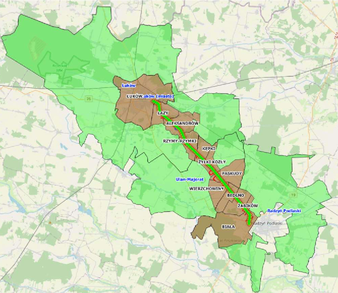 Drony pojawią się na terenie następujących gmin: miasto i gmina Łuków, Łazy, Aleksandrów, Rzymy – Rzymki, Ulan – Majorat, Kępki, Paskudy, Wierzchowiny, Żyłki Kozły, Radzyń Podlaski, Bedlno i Biała.Obecność bezzałogowych statków powietrznych będzie związana z realizacją zadania pod nazwą „Przebudowa linii 110 kV relacji Radzyń-Łuków". W związku z tym zachodzi konieczność przeprowadzenia prac geoinformatycznych – inwentaryzacji dróg dojazdowych oraz sporządzenie mapy przebiegu linii.