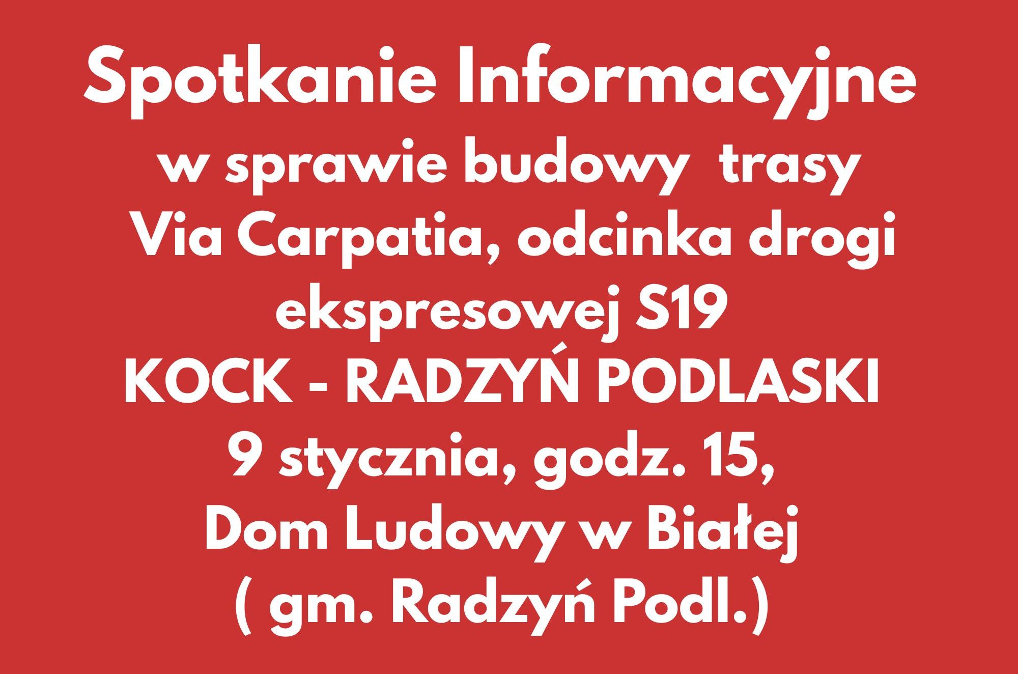 Via Carpatia S19 Radzyń–Kock. Spotkanie informacyjne po wydaniu decyzji ZRID